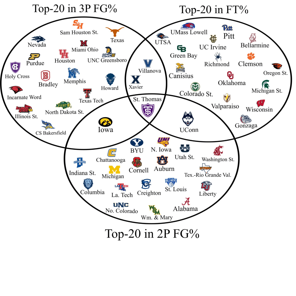 Actually, I have to take the over when I see a total this high. I’m sorry. Their last matchup had a final score of 119-104 without overtime. The (outdated now) ven diagram above shows how efficient St.Thomas is making them one of my favorite teams to bet on.